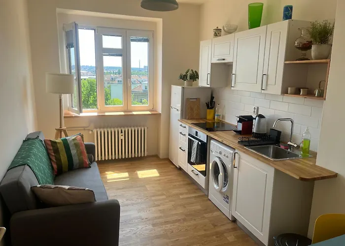 Les attractions de la région incluent le Mémorial national de Vítkov, à 2 km, et le château de Prague se trouve à 6 km de l'appartement. Le centre de Prague n'est qu'à 4 km. Cet appartement Stylovy A Slunny Byt S Umeleckym Nadechem V Blizkosti Centra est niché à 10 minutes en voiture du Pont Charles.